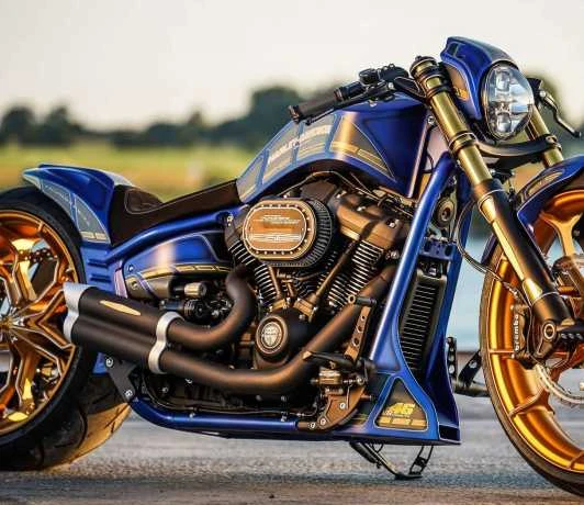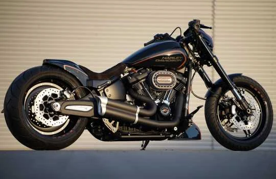 Da uns keine Auspuffanlage am Markt gut genug für unsere sportlichen Umbauten war, haben wir diesen, für unser Showbike Grand Prix erdachten Prototypen, fertig für die Kleinserie an aktuellen Softail gemacht. Der handgefertigte Auspuff sorgt dabei nicht nur für coole Optik, sondern auch den entsprechenden Sound.