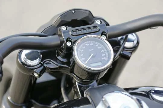Passend für Harley-Davidson Softail Breakout 13-17 Modelle. Die Serien – Klemme kann weiter verwendet werden. In Kombination mit unserem Scheinwerfer-Kit „Torque“. Nur 25mm hoch!