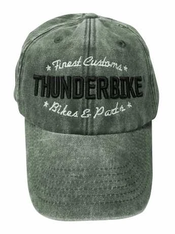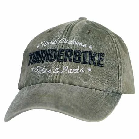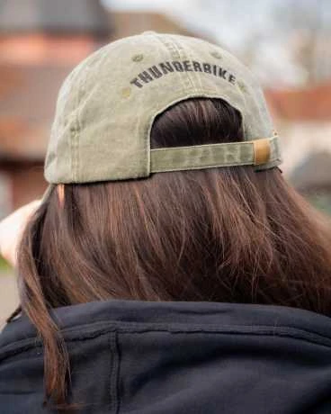 Die brandneue Thunderbike Baseball Cap im Vintage Design mit „Customs“ Bestickung ist hinten verstellbar.